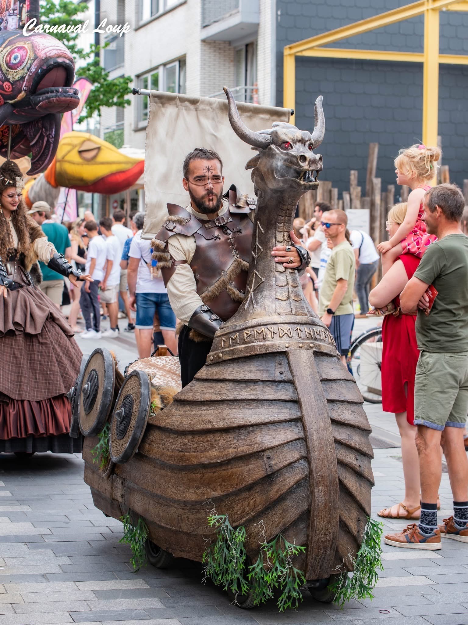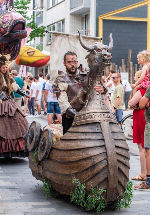 Een rijdende Vikingboot, met een imposant drakenhoofd aan de boeg, trekt door de straten. De boot zelf is een bron van geluid. De geluiden weven een betoverende sfeer die de zintuigen prikkelt en het hart sneller doet kloppen. Het drakenhoofd waakt over zijn tocht, en zo nu en dan blaast het een wolk, terwijl zijn ogen oplichten met een vurige gloed. Zodra de schemer valt, ontvouwt zich een visueel spektakel: de vissen stralen magisch licht uit en de boot is sfeervol verlicht, wat de act in het donker een extra dimensie geeft.