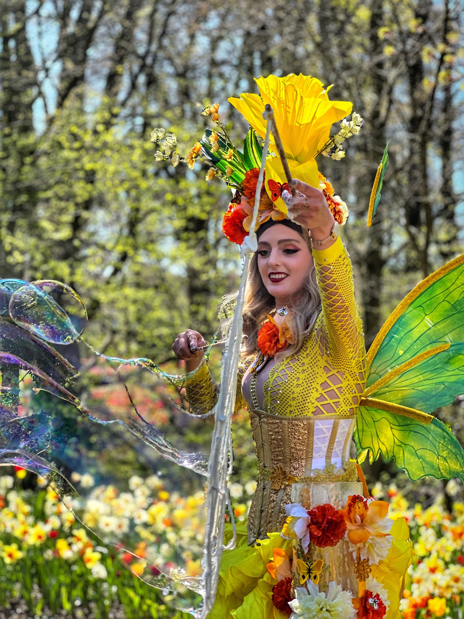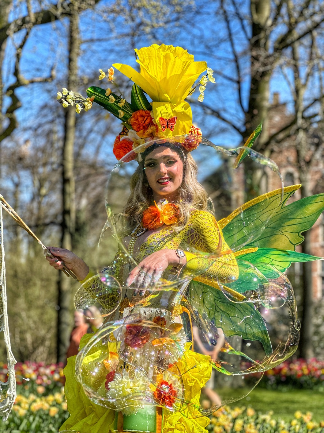 Deze bijzondere straatact trekt direct de aandacht van jong en oud. De grote glinsterende bellen dansen door het publiek en zorgen voor spontane verwondering, lachende gezichten en prachtige fotomomenten. Dankzij de mobiele opzet kan de Reuzenbellenfee flexibel worden ingezet op verschillende plekken tijdens een evenement.