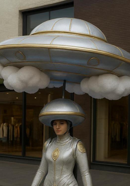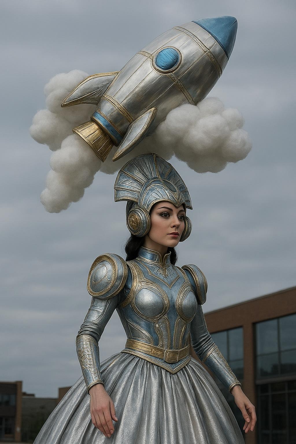 Centraal zweeft het space-vliegtuig, bestuurd door een charismatische piloot die met speels gemak contact maakt met de toeschouwers. Aan zijn zijde bewegen twee elegante Nebula Queens, die dankzij hun bijzondere kostuums bijna gewichtloos over de grond lijken te glijden.