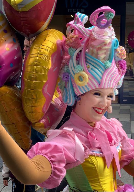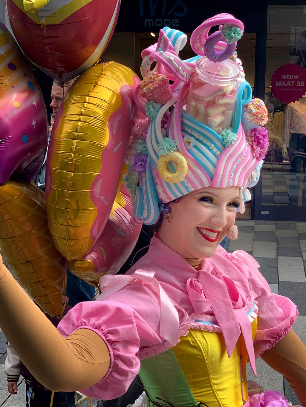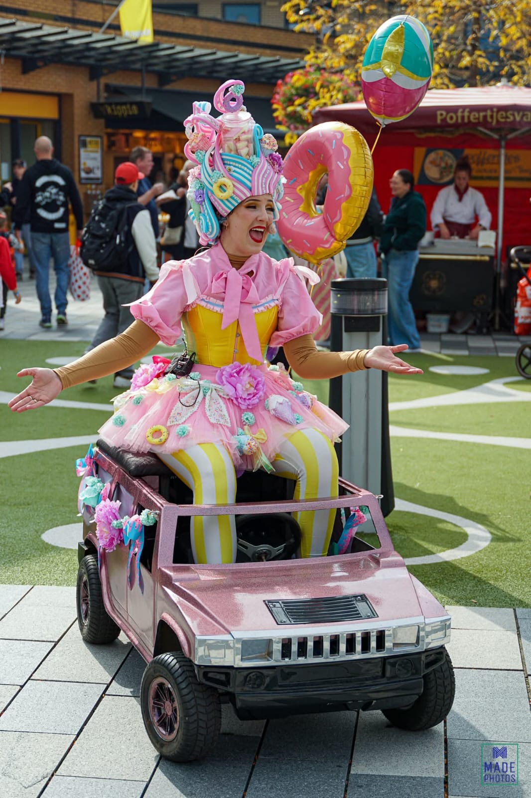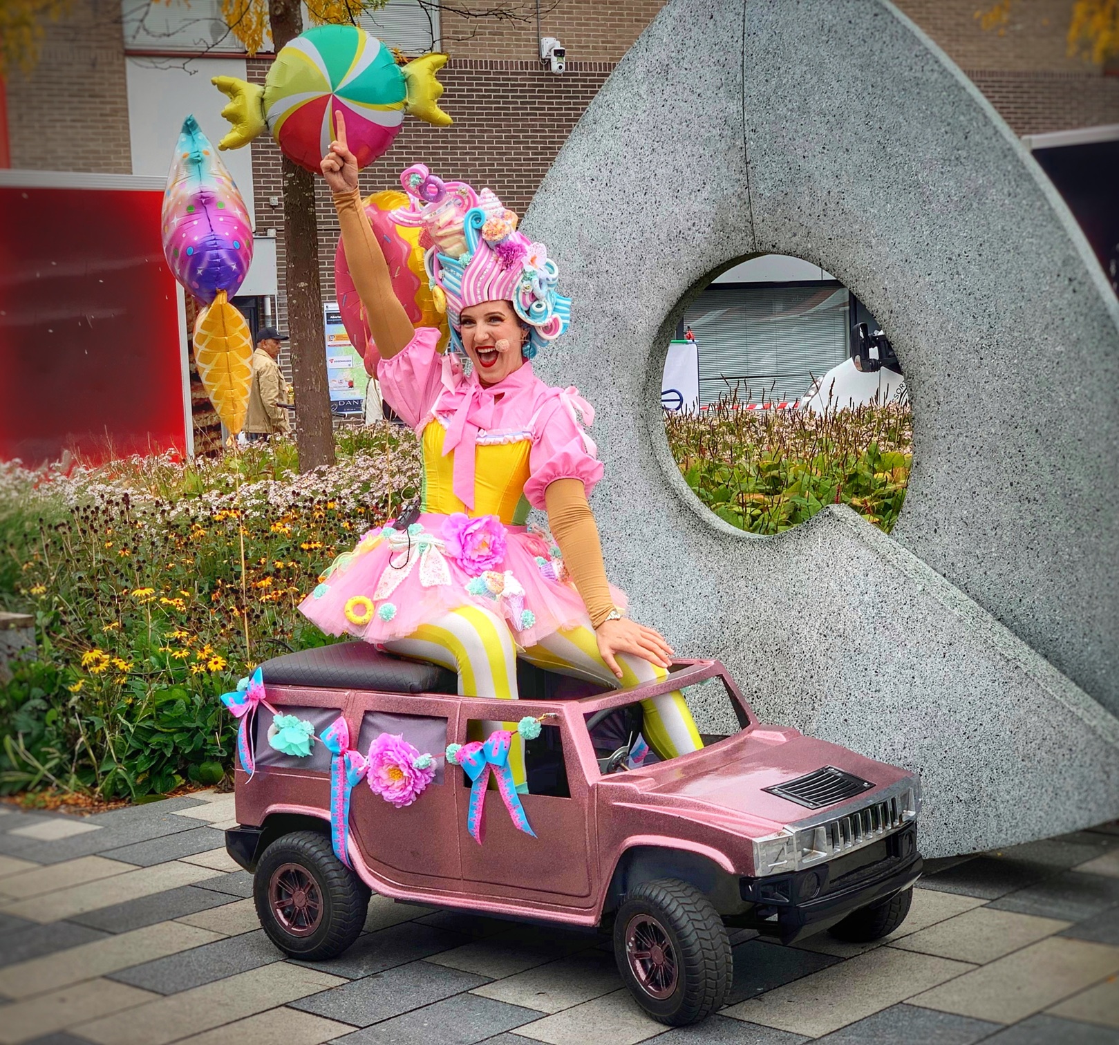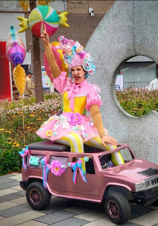Betreed de betoverende wereld van de Singing Candy, waar een dame zo zoet als snoep en vol zoete kleuren en lekkernijen in een roze autootje rijdt. Laat je meeslepen door haar mooie stem terwijl ze je betovert met haar zoete melodieën, haar voertuig elegant bewegend als een dansende suikerspin. Om haar heen zweven ballonnen in de vorm van snoepjes, waardoor de lucht gevuld wordt met een feestelijke sfeer van vreugde en verwondering. Bereid je voor om weggevoerd te worden op een reis vol fantasie en zoete dromen terwijl je de wereld verkent met de Singing Candy.