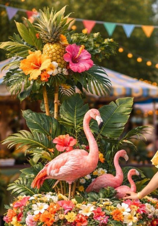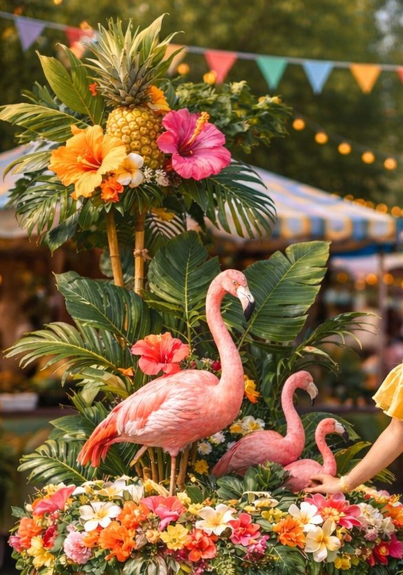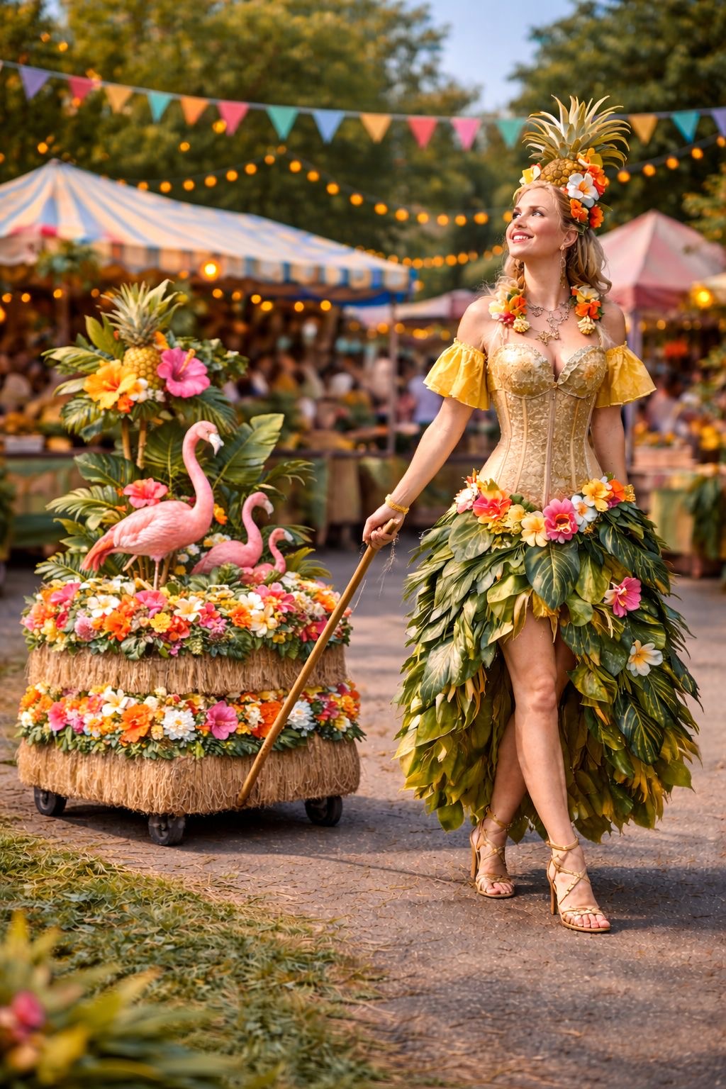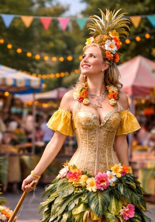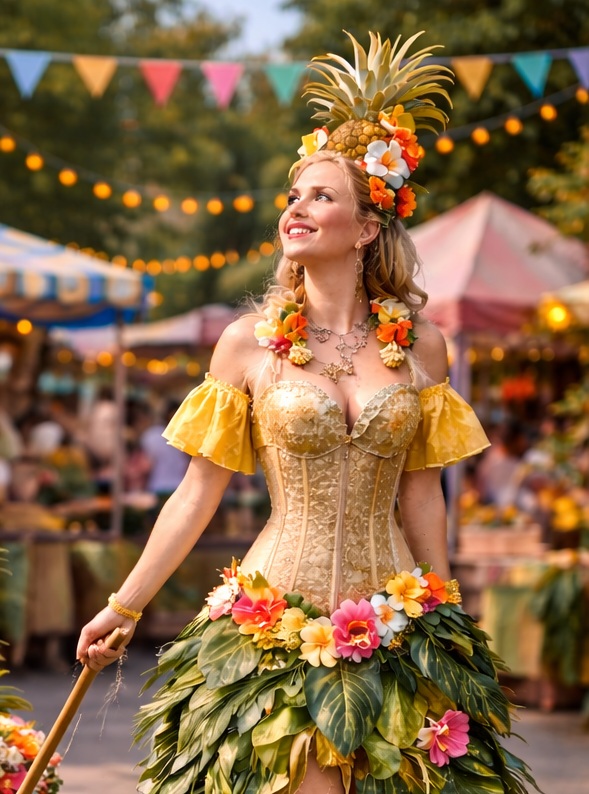 Tropical Tunes brengt deze stralende zangeres een tropisch feestje naar ieder evenement. Gehuld in een kleurrijke outfit vol tropische bladeren en met een speelse ananas op haar hoofd, is ze een opvallende verschijning die direct de aandacht trekt.